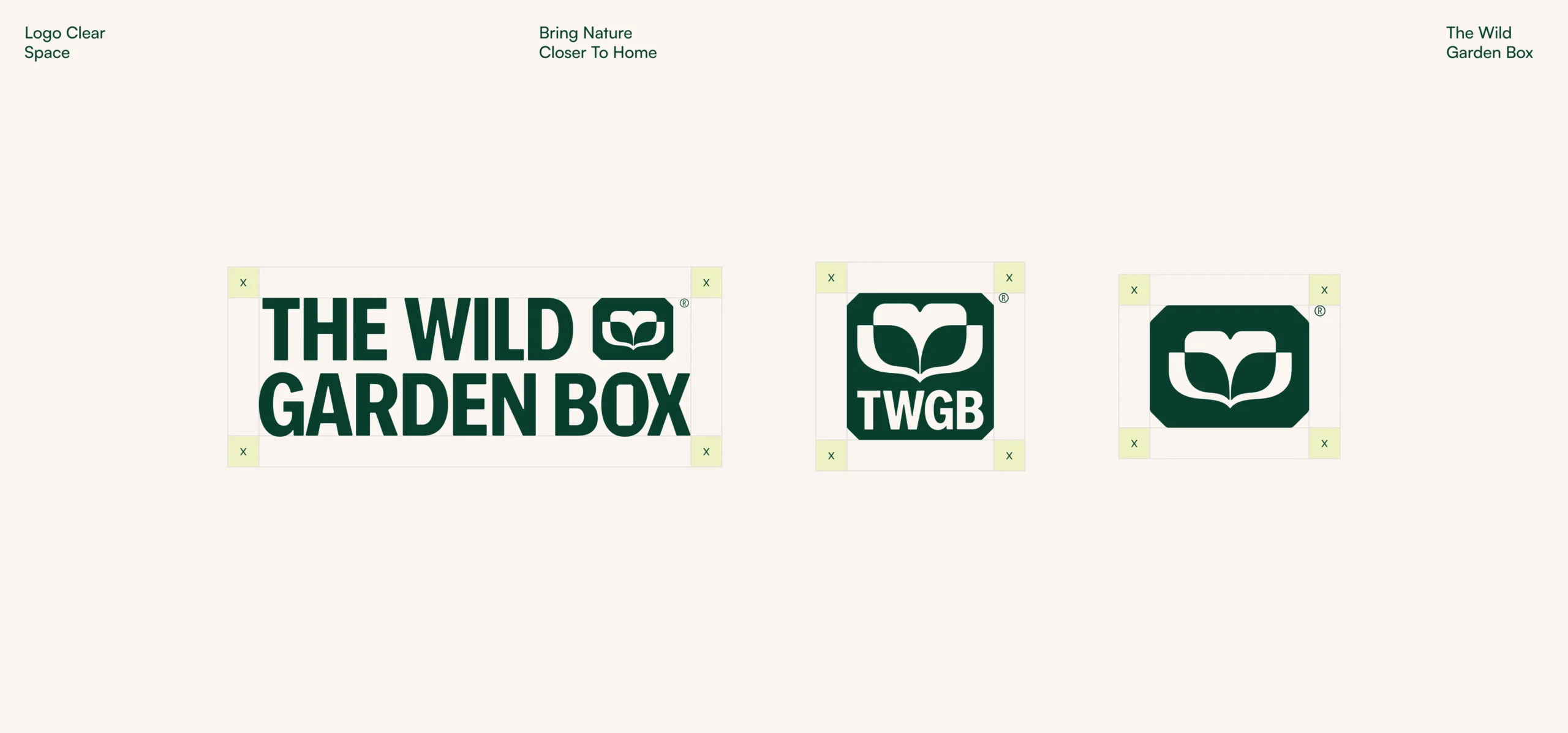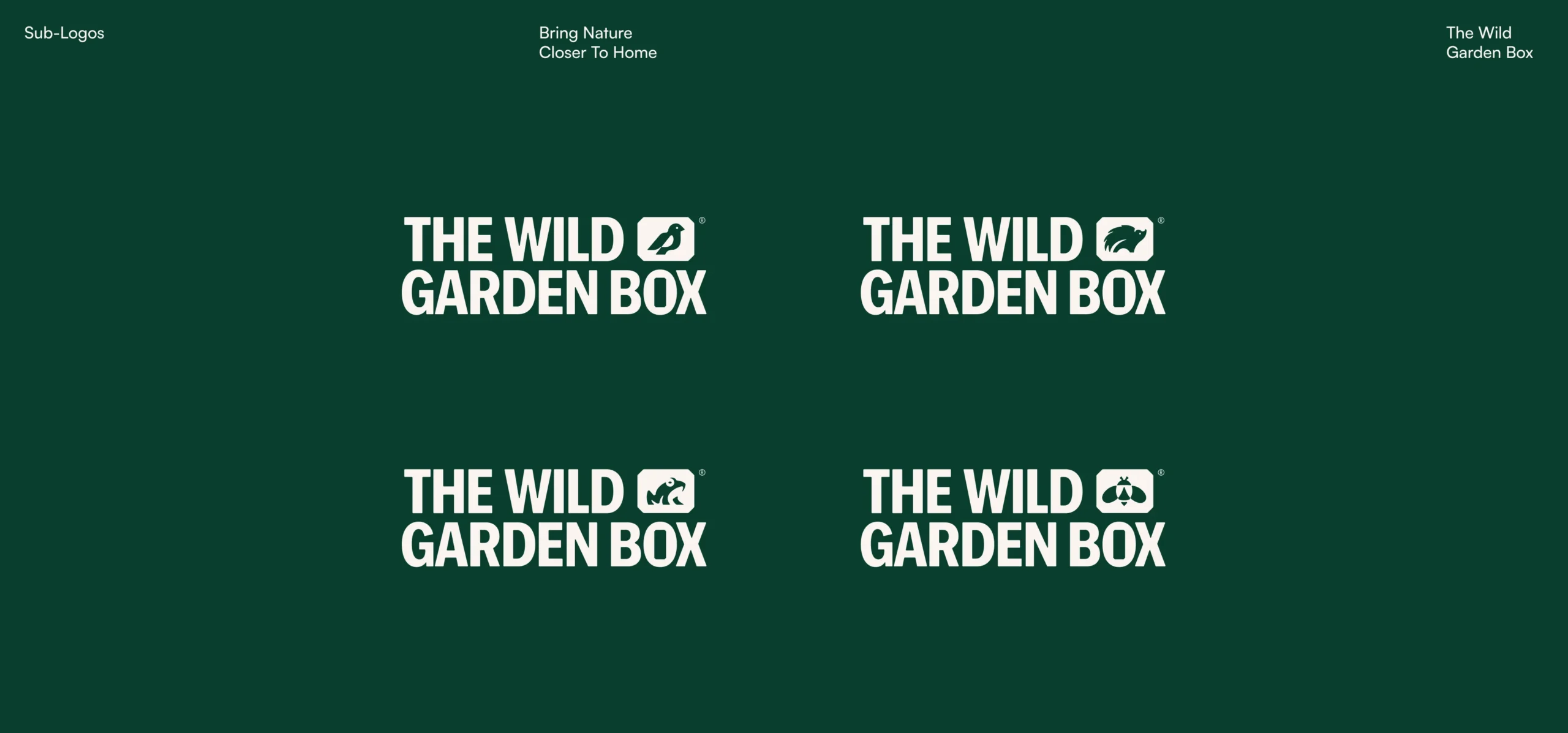 The redesigned logo keeps the essence of the original concept while simplifying it into a more controlled and versatile form. The box element is retained as a central idea, now expressed through a minimal, balanced mark that subtly references growth and containment. The typography is bold and modern, giving the brand a clear and confident voice while remaining highly legible across different formats. The structure of the logo allows for easy modification of the product name, making it adaptable for variations such as The Wild Bird Box or The Wild Pond Box. Supporting logo variations ensure the identity works across different use cases, from larger applications to compact labels and tags.