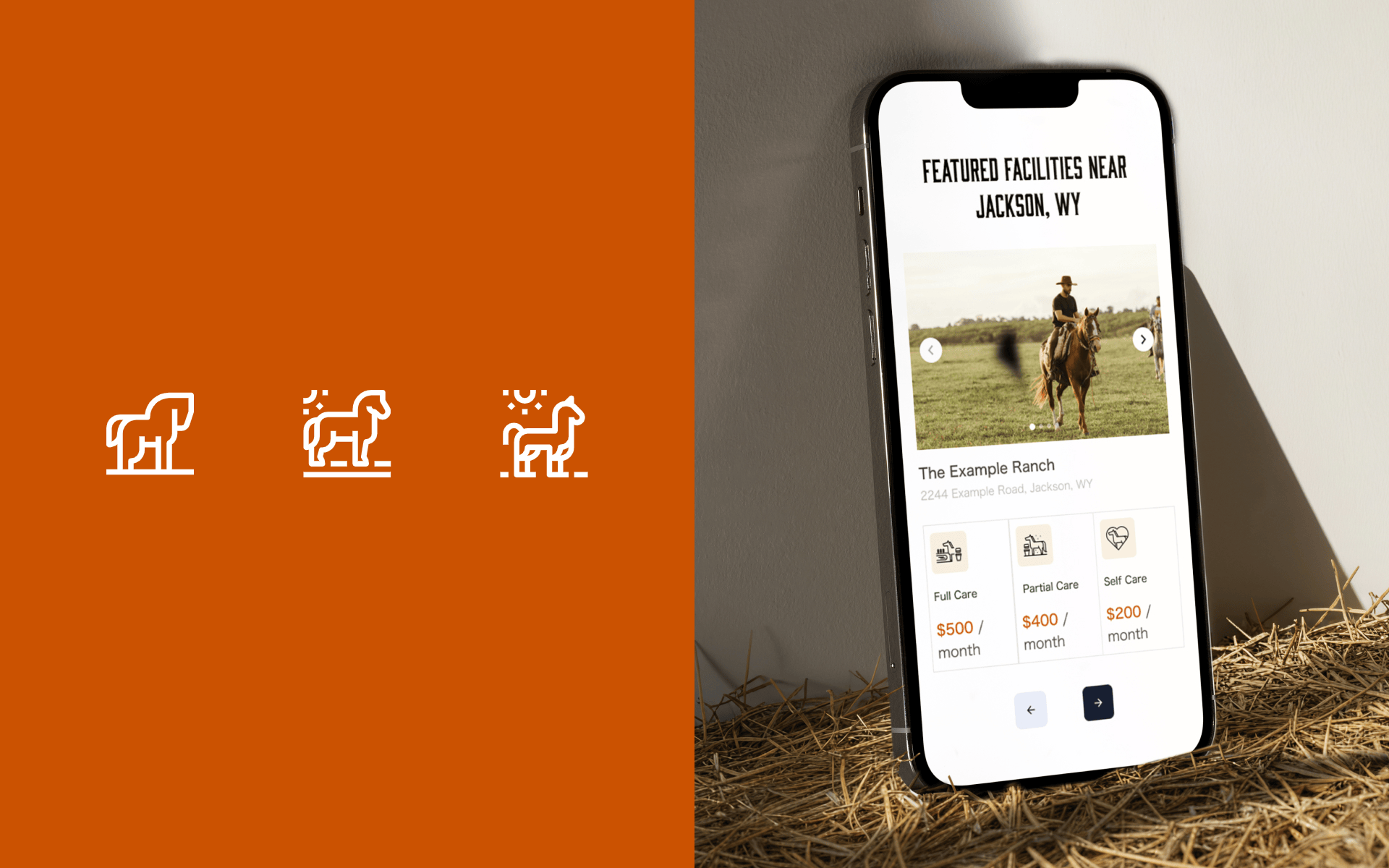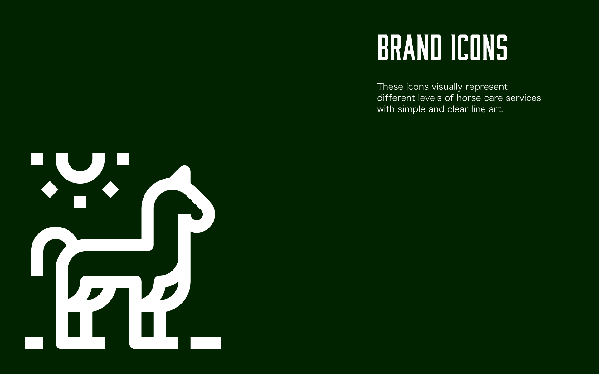 We created brand icons that visually represent different levels of horse care services with simple and clear line art. These icons function not just as design elements, but as a core branding tool—communicating professionalism, building trust, and helping users quickly navigate equestrian services online