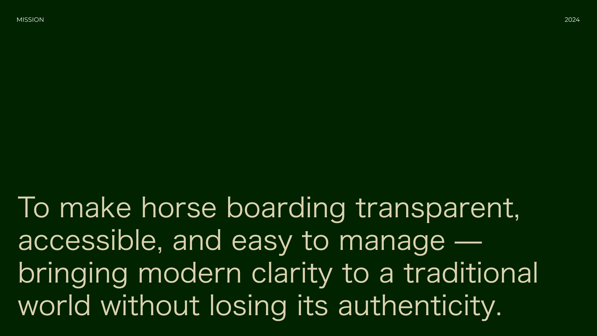 The horse boarding industry remains deeply offline — built on personal connections, word of mouth, and manual routines. Barn owners lose potential clients due to lack of visibility, while horse owners waste time and money chasing incomplete or inconsistent information. Trust still relies on people, not systems, simply because there haven’t been any modern digital tools to support it.