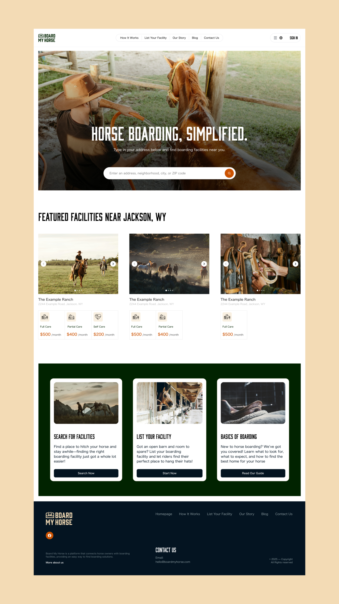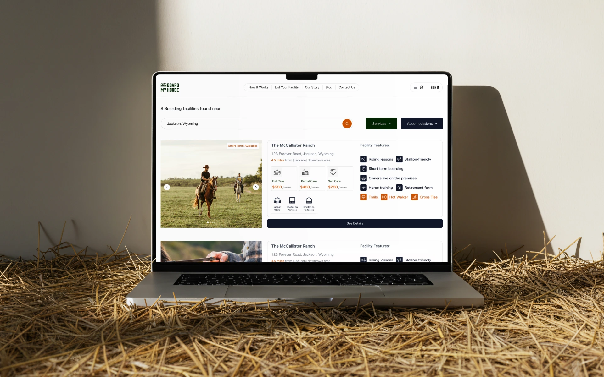 Board My Horse is a platform that connects horse owners with boarding facilities, providing an easy way to find and book horse boarding.