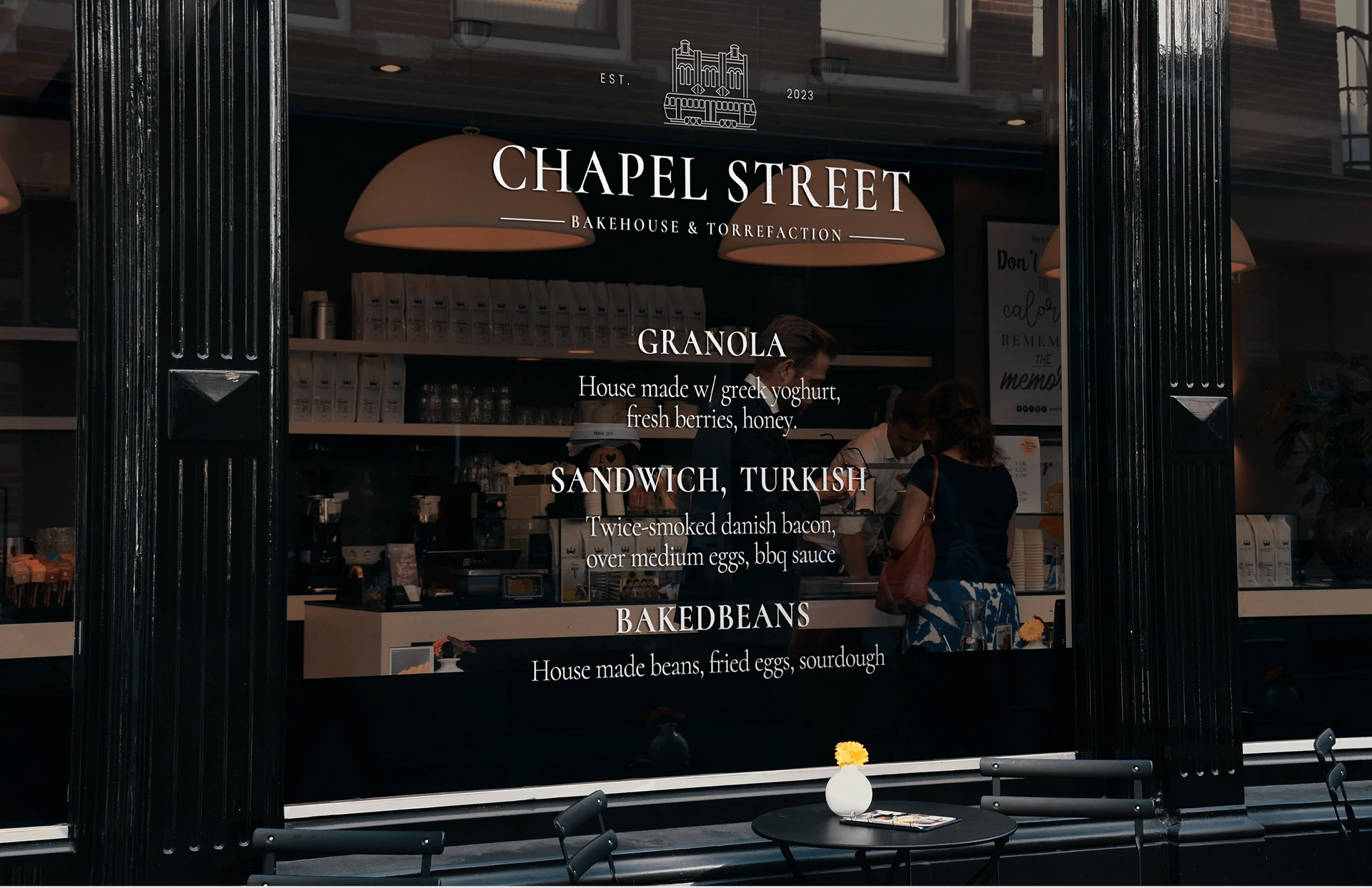 The branding needed to feel stylish and aspirational without being too “café-like.” Since the cafe transforms from a daytime coffee spot to an evening destination, the branding had to avoid feeling too casual or overly associated with morning café culture.