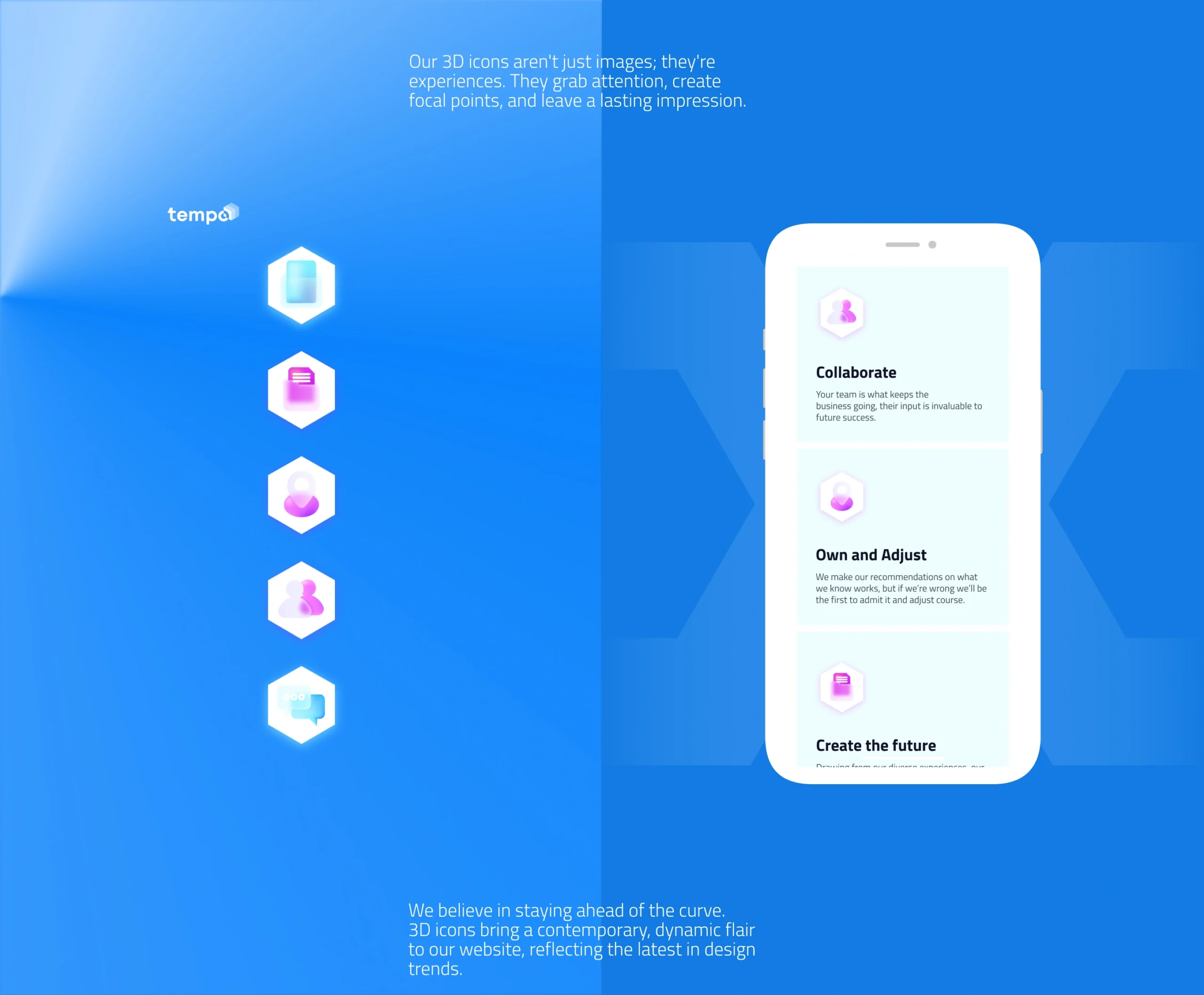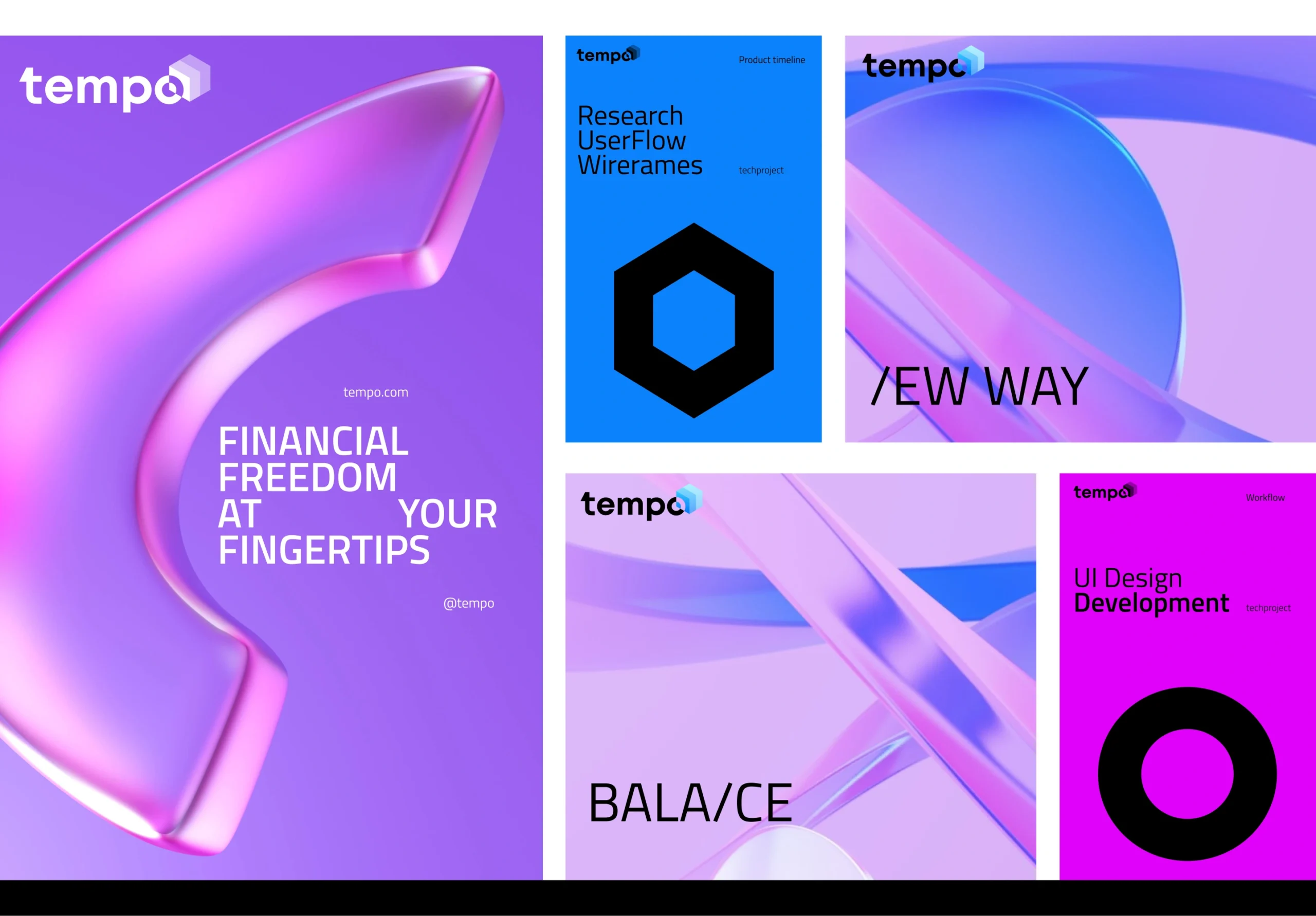 The hexagon became the backbone of the Tempo logo. We paired it with modern typography that feels professional but still approachable.